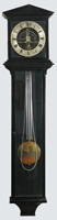 Ebonisiertes Birnbaumgehäuse, versilbertes skelettiertes Ziffernblatt, lackierter Holzpendelstab, eingewichtig, Gangdauer 1 Woche. Vergleich: Sammlung Sobek im Geymüller-Schlössl, Österreichisches Museum für angewandte Kunst, Bodenstanduhr Inv. Nr. 1487. |